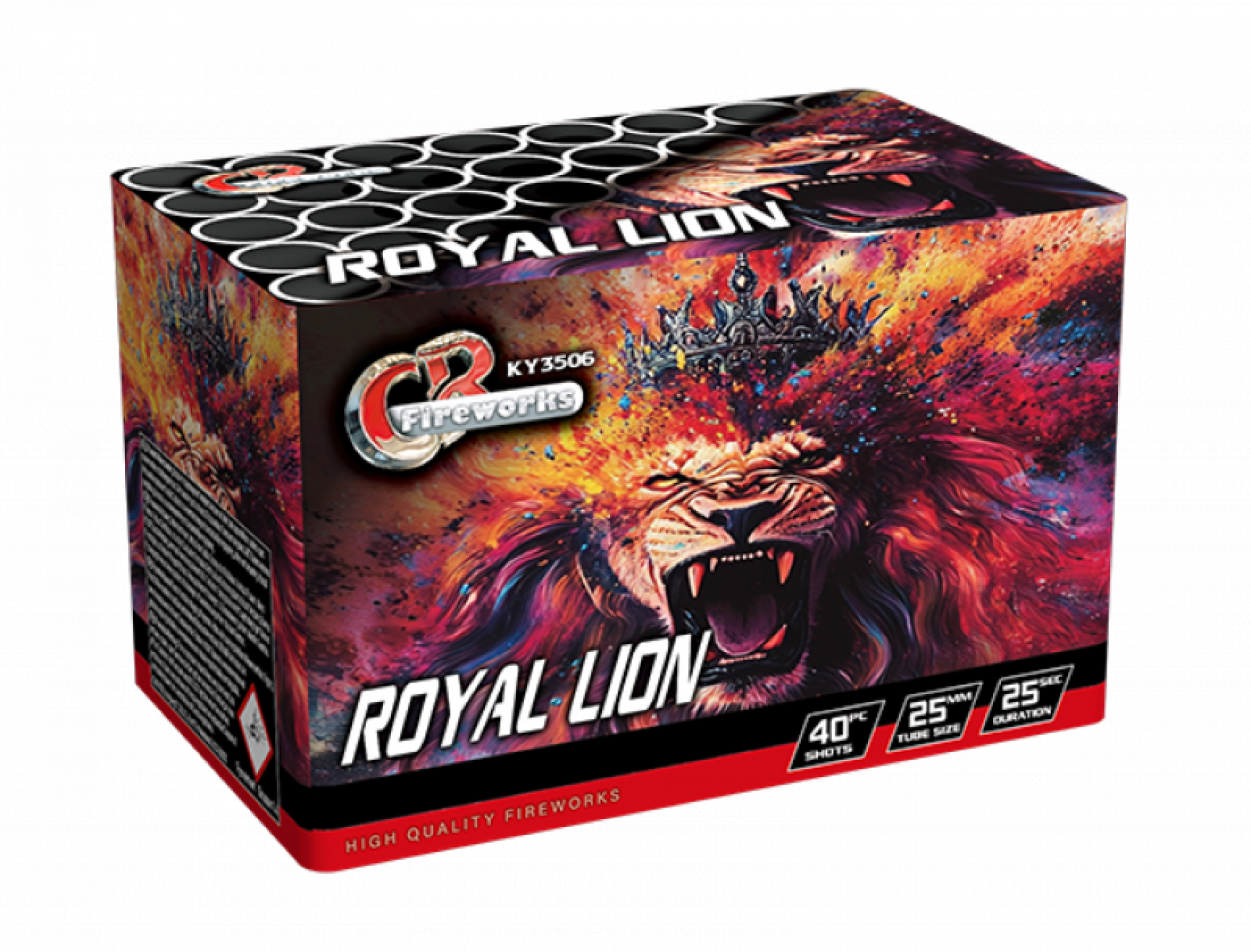 ROYAL LION – een 40-schots cake vol kracht en elegantie. Rijke kleuren, stevige bursts en een vurige finale maken dit een koninklijke vuurwerkshow voor elke liefhebber.